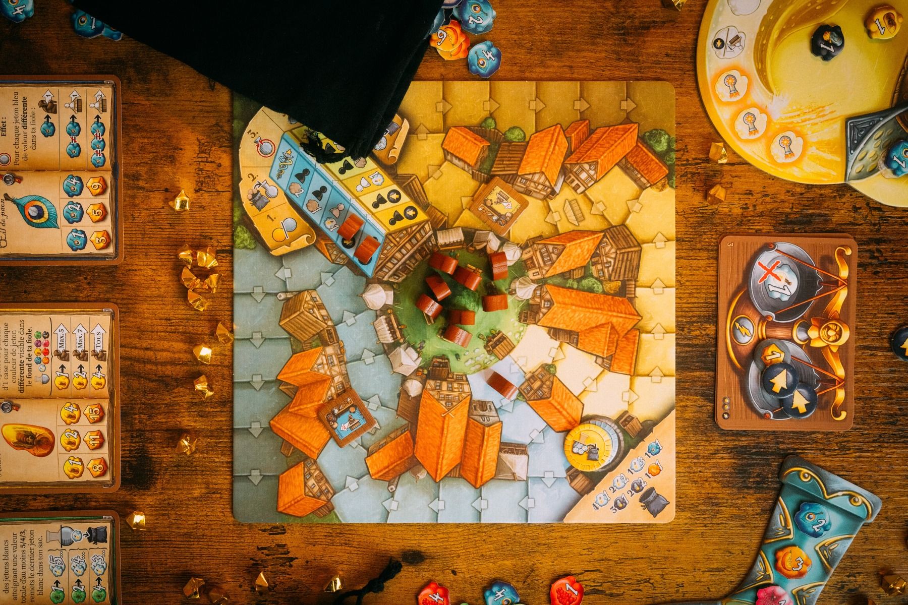 Bei die Quacksalber von Quedlinburg Das Duell wimmelt es auf dem Quedlinburger Marktplatz von Leben. Zwei schrille Marktschreier buhlen mit lautstarkem Spektakel um die Aufmerksamkeit der neugierigen Zuschauer. Jede ihrer Aktionen erfordert volle Aufmerksamkeit, denn was der eine tut, wirkt sich sofort auf den anderen aus. Wer schafft es am Ende, die meisten Besucher an seinen Stand zu locken?